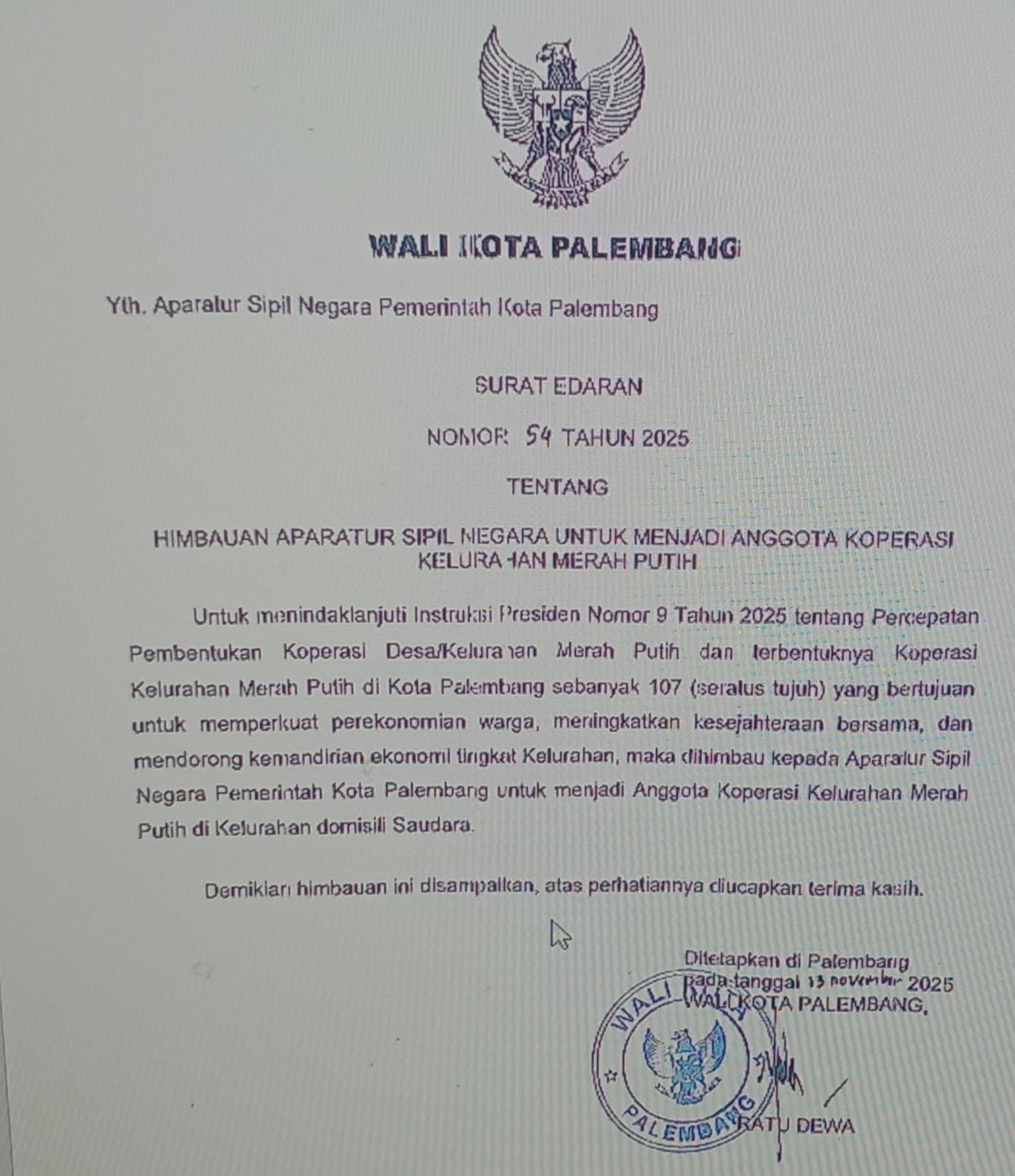 Saat ini, tercatat sudah terbentuk 107 Koperasi Kelurahan Merah Putih di berbagai titik di Kota Palembang. Pemerintah berharap, keberadaan ASN di dalamnya bisa menjadi “mesin awal” untuk menggerakkan aktivitas koperasi, terutama dari sisi permodalan dan kepercayaan publik.